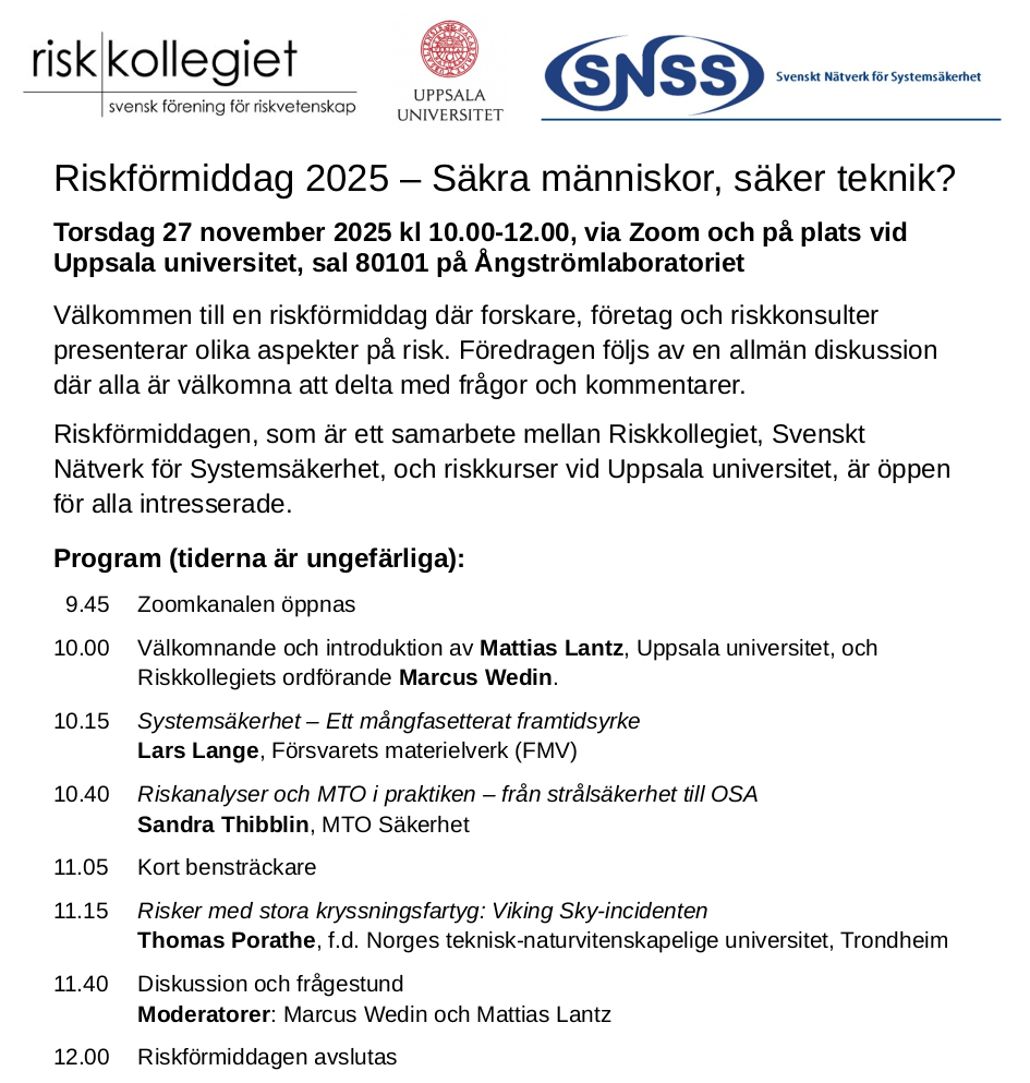 Nätverk för Systemsäkerhet, och riskkurser vid Uppsala universitet, är öppen